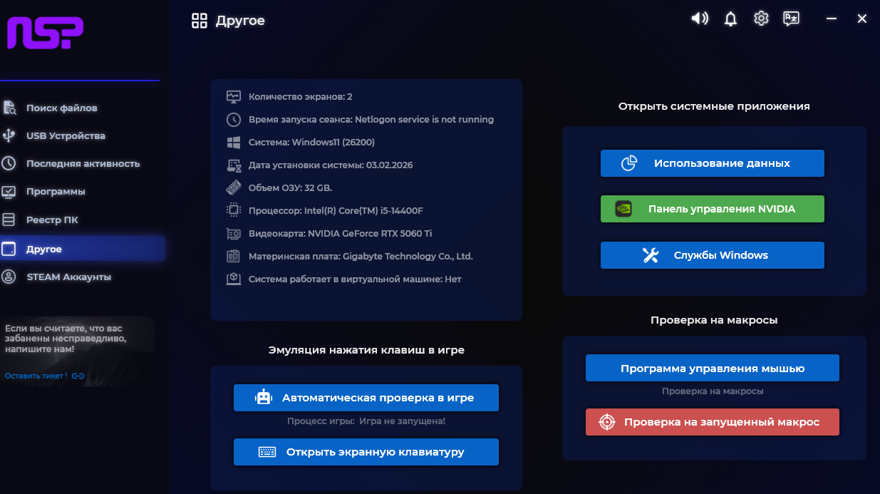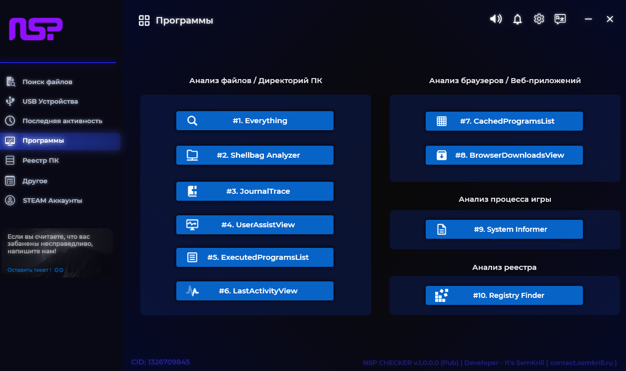 — Программа предназначена для обеспечения удобства при проверке Администратором Игрока на наличие стороннего ПО.